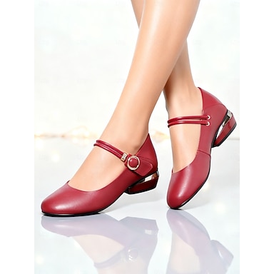 Røde damesko i ekte skinn med Mary Jane-motiv – komfortable ballroomsko med lav hæl &scenesko for latin, salsa og øving