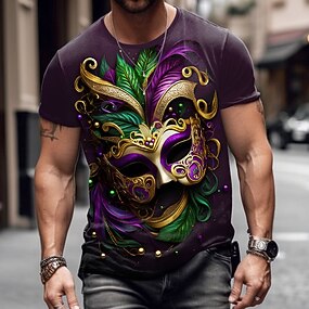 Mardi gras Herre Maske T skjorte Kortermet T skjorte 3D-utskrift Crew-hals Skjorte Designer Fritid Fest Ferie Klubb Lilla Sommer Vår Klær S M L XL XXL XXXL