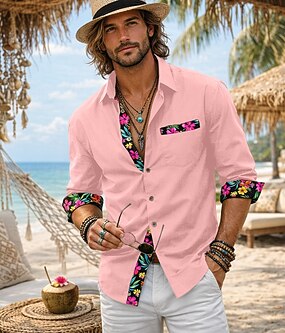 herreskjorte linskjorte sommerskjorte strandklær skjorte med knapper blomstret avslappet daglig bohemsk svart hvit rosa grå langermet jakkeslag sommer vår &høstklær klær skjøte