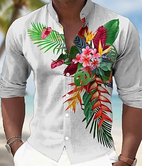 Herre Tropiske blomster Palmeblad Tukaner Skjorte Hawaiiskjorter Skjorte med stativ krage Langermet Hawaiisk Avslappet Feriereise Vår Høst Kinesisk Krave Båndkrage 3D-utskrift Skjorter med knapper