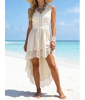 Dame Midikjole Blonde kjole Hvit kjole Mote Moderne Daglig utendørs Feriereise Normal Blomstret Ermeløs Høy krage Hvit Sommer Vår Høst