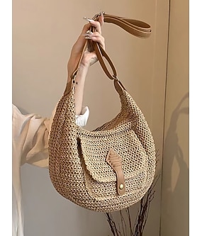 håndlaget vevd salveske i halm for kvinner med stor kapasitet skulderveske - bohemsk crossbody-veske med frontlomme, sommerveske til strand, uformell reiseveske for ferie, shopping og daglig bruk