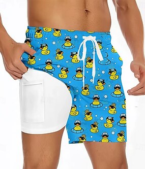 Herre Dyr Morsom And Fôret shorts 2 i 1 svømmeshorts Badeshorts Medium Midje Hawaiisk Feriereise Strand Klær Sidelommer Med kompresjonsforing Elastisk snøring i midjen Designer Klær