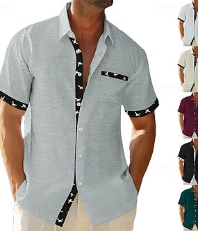 Herre Skjorte linskjorte Sommerskjorte Strand Klær Skjorte med knapper عادي Feriereise Curise Svart Hvit Blå Grønn Kortermet Krage Sommer Vår Klær