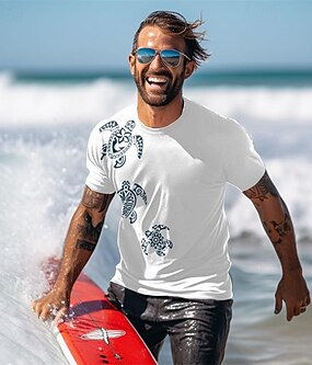 Herre Skilpadde Maori T skjorte Kortermet T skjorte 3D-utskrift Crew-hals Skjorte Tropisk Hawaiisk Feriereise Gate Daglig Blå Sommer Vår Klær S M L XL XXL XXXL