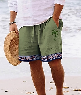 Herre Shorts Lin Shorts Sommershorts Strandshorts Snorer Lomme Elastisk midje عادي Komfort Pustende Kort Avslappet Daglig Ferie Mote Klassisk Stil Hvit Militærgrønn
