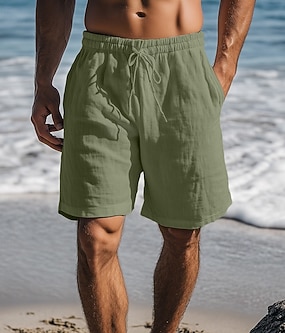 Herre Shorts Lin Shorts Sommershorts Strandshorts Snorer Lomme Glidelås ben عادي Komfort Pustende Kort Avslappet Daglig Ferie Mote Klassisk Stil Hvit Navyblå