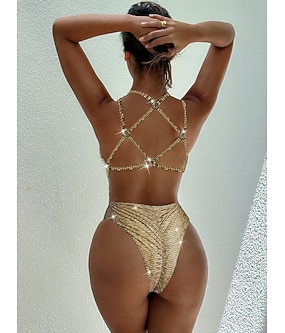 Dame Badetøy Bikini 2 stk G-streng Badedrakt Tynn Åpen rygg Ferie Strand Klær Helfarge Grimehals Ermeløs Badedrakter