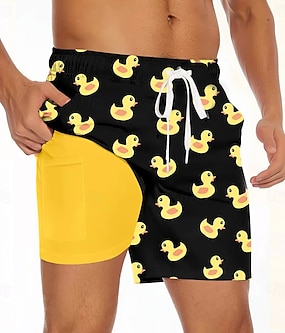 Herre Dyr Morsom And Fôret shorts 2 i 1 svømmeshorts Badeshorts Medium Midje Hawaiisk Feriereise Ferie Strand Klær Sidelommer Med kompresjonsforing Elastisk snøring i midjen Designer Klær