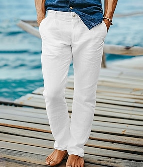 Herre Linbukser Bukser Dressbukser Sommerbukser Strandbukser Lomme foran Rett ben عادي Komfort Pustende Full lengde Formell Virksomhet Ferie Mote Grunnleggende Svart Hvit Uelastisk
