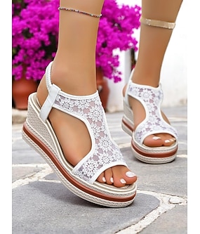 Hvite blondesandaler til dame – romantiske platåsko i bohemsk stil til feriesteder, hagefester og sommerdates