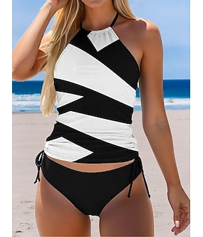 Dame Tankini 2-delt Badedrakt Rynket Fargeblokk Kjekk Uten Rygg Ferie Strandantrekk Fargeblokk Halter Hals Uten ermer Badedrakter