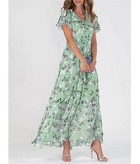 kvinners maxi-kjole med blomstertrykk v-hals flagrende erme flytende blå hvit elegant bryllup gjestehagefest sommer vår feminin silhuett lett komfortabel forskjellige størrelser