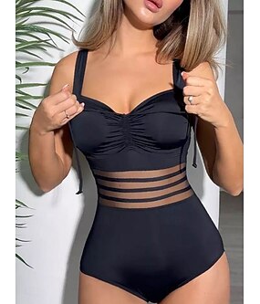 Dames Etdelt Badedrakt Slankende Sexy Utskjæring Monokini Mesh Magekontroll Høy Midje Tynn Ryggen Uten Stropper Ferie Strand Bekledning Solid Farge V-hals Uten Ermer Badedrakter