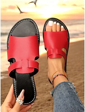røde slip-on sandaler for kvinner – stilige flate sandaler med åpen tå for sommerstrandtøy, uformelle gåturer og ferieantrekk