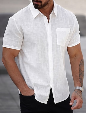 Herre Skjorte Linskjorte Uformell skjorte Skjorte med knapper Bomullsskjorte عادي Feriereise Gate Hvit Kortermet Aftæpning Sommer Klær Lomme