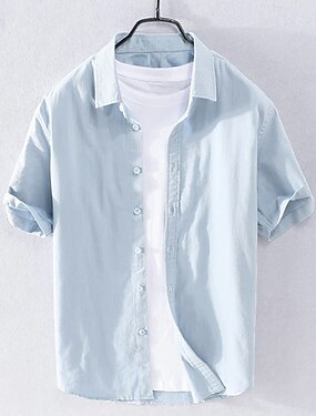 Herre Skjorte linskjorte Sommerskjorte Strand Klær Skjorte med knapper عادي Feriereise Curise Hvit Rosa Lyseblå Kortermet Krage Sommer Vår Klær