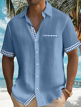 Herre Skjorte Linskjorte Sommerskjorte Strandskjorte Skjorter uten stopp Ruter Feriereise Ferie Gul Blå Grønn Kortermet Krage Sommer Klær