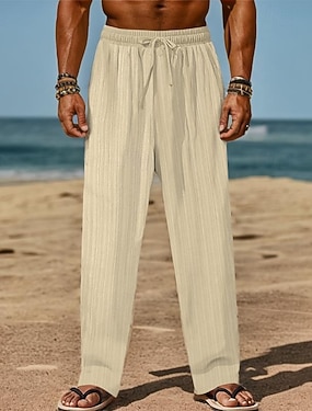 Herre Linbukser Bukser Sommerbukser Strandbukser Snorer Elastisk midje Rett ben عادي Komfort Pustende Full lengde Daglig Ferie Strand Ferie Mote Svart Hvit