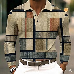 Herre Geometrisk Polo Langermet Poloskjorter Skjorter med krage Business Casual Virksomhet treningsklær Dagligdagstøy 3D-utskrift Knapper Vår Høst Vinter Rød Blå Oransje