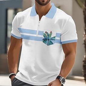 Herre Palmeblad Poloskjorter Kortermet Poloskjorter Skjorter med krage Fritid Feriested treningsklær Ferie Ferieklær Lomme 3D-utskrift Kvart zip-polo Vår sommer Blå Lilla Grønn