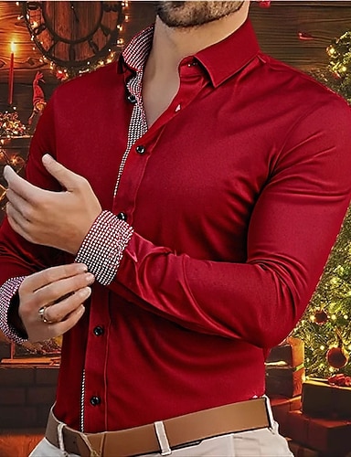 Herre Sommerskjorte Dresskjorter Skjorte med krage Skjorte med knapper عادي Bryllup Arbeid Svart og Hvit Safir Marineblå Svart, rød Langermet Krage Klær