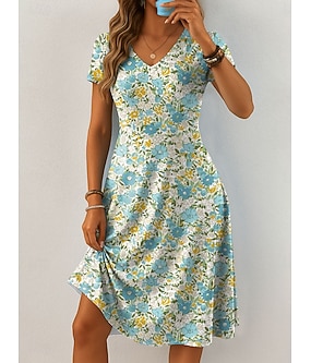 Dame Mini kjole T skjortekjole Kjole med A-linje Sommerkjole Ferie Fritid Daglig Strand Ferie Normal Blomstret Grafisk Dyr Kortermet V-hals Blå Gul Rød Lys Lilla Sommer Vår