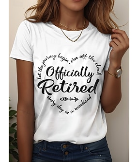 Dame T-skjorte Pensjonert Grafisk Bokstav Vintage Stilig Klassisk Kortermet Rundhals Vanlige Topper Daglig Helg Print Svart Hvit Rosa Blå Lilla Sommer