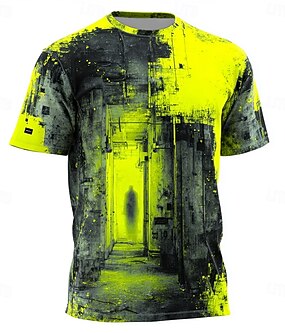 menns neon gul industriell gang silhuett skyggefigur distressed grunge cyberpunk streetwear edgy techwear t-skjorte vanlig avslappet rave klær s m l xl xxl xxxl