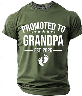Forfremmet til bestefar est. 2026 farsdag menns baby fotavtrykk graviditetskungjøring ny bestefar gave grafisk t-skjorte kortermet rund hals casual t-skjorte designerklær s m l xl xxl xxxl