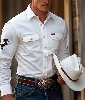 Herre Dyr Hest Arbeidsskjorter Western skjorte Cargo skjorte Langermet Taktisk Vintage retro Sport & Utendørs Arbeidstøy Vår Høst Aftæpning To lommer foran Skjorter med knapper Svart Hvit