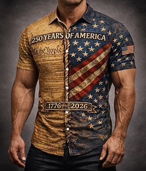 Herre 4. juli USAs 250-årsjubileum USAs flagg Vi er folket Skjorte Skjorte med knapper Kortermet Patriotisk utendørs Ferie Sommer Vår Aftæpning 3D-utskrift krage skjorter Vin Brun