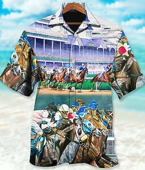 Kentucky Derby Herre Hest Skjorte Hawaii skjorte Skjorte med knapper Kortermet Tropisk Mote Hawaiisk Avslappet Hawaiisk Ferie Sommer Vår Aftæpning Trykt mønster Knapp ned Morsomme Kentucky