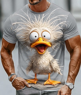 Herre Fugl Grinete T skjorte Kortermet T skjorte 3D-utskrift Crew-hals Skjorte overdrevet Designer Fest Ferie Blå Svart Gul Sommer Vår Klær S M L XL XXL XXXL