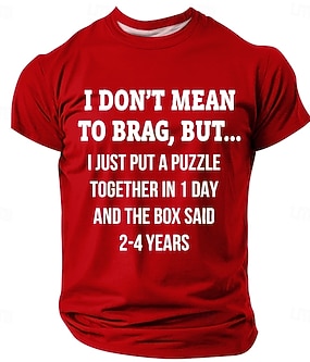 Mens Morsom Grafisk T-Shirt "Jeg Mener Ikke Å Skryte Men Jeg Løste Et Puslespill På 1 Dag Boksen Sa 2-4 År" Kortermet Hobby Tee
