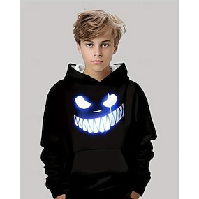Halloween Gutt 3D Spøkelse Hattetrøje Langermet Vår Høst Mote Gatemote Barn 4-12 år Med hette utendørs Avslappet Daglig Normal
