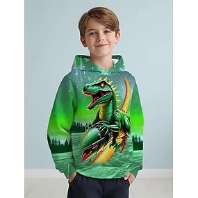 Gutt 3D Grafisk Galakse Dinosaur Hattetrøje Langermet Vår Høst Mote Gatemote Barn 4-12 år Med hette utendørs Avslappet Daglig Normal