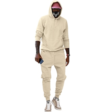 Herre Joggedress Antrekkssett Hettegenser Hettegenser utendørs Daglig Sport Lomme Snorer Fargeblokk Svart Rød Navyblå Polyester Sportsklær Mote Gatemote Vår
