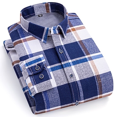 Herre Shacket Rutete / stripete / Chevron Feriereise Nyttår Lyseblå Marineblå + hvit Gul Rød Langermet Klassisk krage Høst vinter Klær Trykt mønster