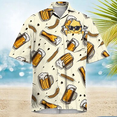 Herre Oktoberfest øl Skjorte Sommerskjorte Skjorte med knapper Kortermet Hawaiisk utendørs Ferie Sommer Vår Aftæpning 3D-utskrift krage skjorter Aprikos