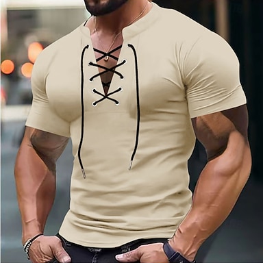 Herre T skjorte T-skjorte Kortermet Snøring i halsen Sommer عادي Gatemote Stilfull Fritid Blondér Avslappet Daglig utendørs Blå Svart Hvit Topp T-skjorte for menn
