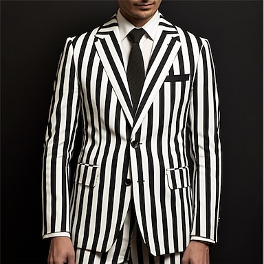Herre Eksamen Blazer Sett Virksomhet Cocktailfest Bryllupsfest Mote Fritid Vår Høst Polyester Stribe Lomme 2 deler Bekvem Enkeltkneppet Blazer Svart Hvit Oransje