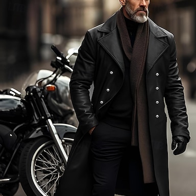 Herre Vinterfrakk Ytterfrakk Lang trenchcoat utendørs Dagligdagstøy Høst Vinter Polyester Yttertøy Klær Mote Gatemote عادي Knaphul Dobbeltkneppet