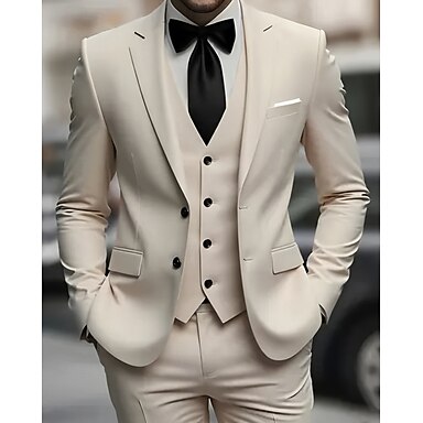 Herre Blazer + Vest + Kjolebukser Sett drakter Virksomhet Cocktailfest Bryllupsfest 3 deler Mote Fritid Vår Høst Polyester Fargeblokk Lomme Knapper Bekvem Enkeltkneppet Blazer Svart Hvit Burgunder
