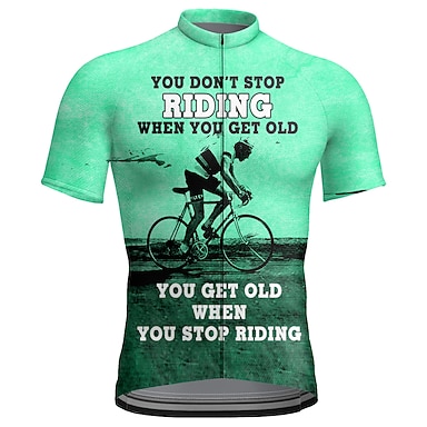 Herre Sykkeltrøyer Grafisk Bokstav & Nummer Du slutter ikke å ri når du blir gammel, du blir gammel når du slutter å ri Kortermet Sykkel Jersey Topper med 3 baklommer Fjellsykling Veisykling