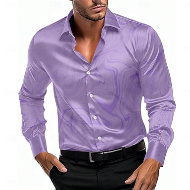 Herre Sateng skjorte Dresskjorter Skjorte med knapper Formell Daglig Hvit Navyblå Lilla Langermet Aftæpning Sommer Vår Klær Knapper