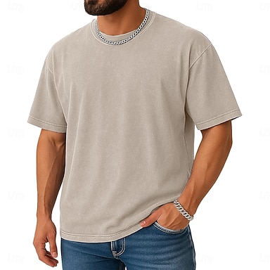 Herre T skjorte Kortermet Crew-hals Sommer Vår Alle årstider Helfarge Elegant Årgang Nøytral Crewneck Falmet Ren Avslappet Hjem utendørs Svart Rosa Kongeblå Topp T-skjorte for menn