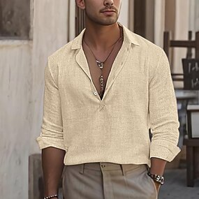Herre Skjorte Linskjorte Viking stil Sommerskjorte Strand Klær Helfarge Feriereise Gate Hvit Oransje Grønn Lyseblå Langermet Krageløs Klær