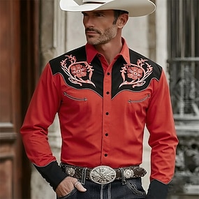Herre Blomstermønster Blomster Skjorte Western skjorte Cowboyskjorte Langermet Vintage retro Avslappet utendørs Arbeidstøy Vår Høst Aftæpning 3D-utskrift Skjorter med knapper Rød Lilla Grønn