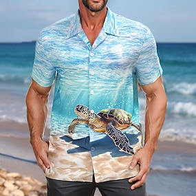 Herre Skilpadde Sjøskapninger Hawaii skjorte Camp skjorte Aloha skjorte Kortermet Hawaiisk Feriereise Ferie Strand Klær Sommer Vår cubansk krage Knepp opp 3D-utskrift Himmelblå